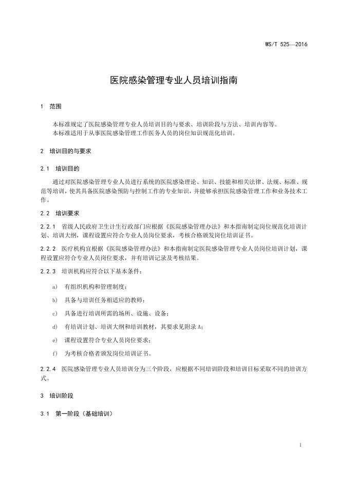 WS/T 525-2016 医院感染管理专业人员培训指南