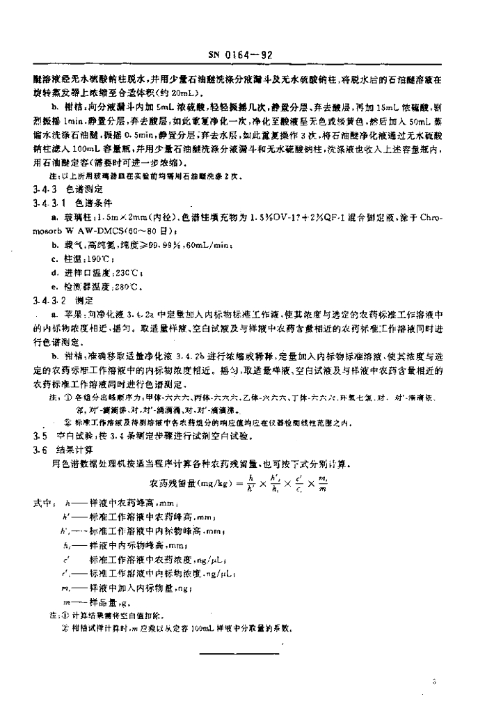 SN 0164-1992 出口水果中六六六、滴滴涕残留量检验方法