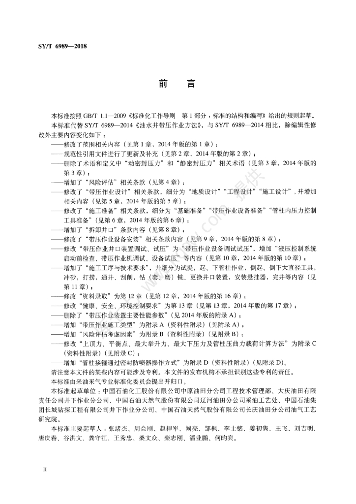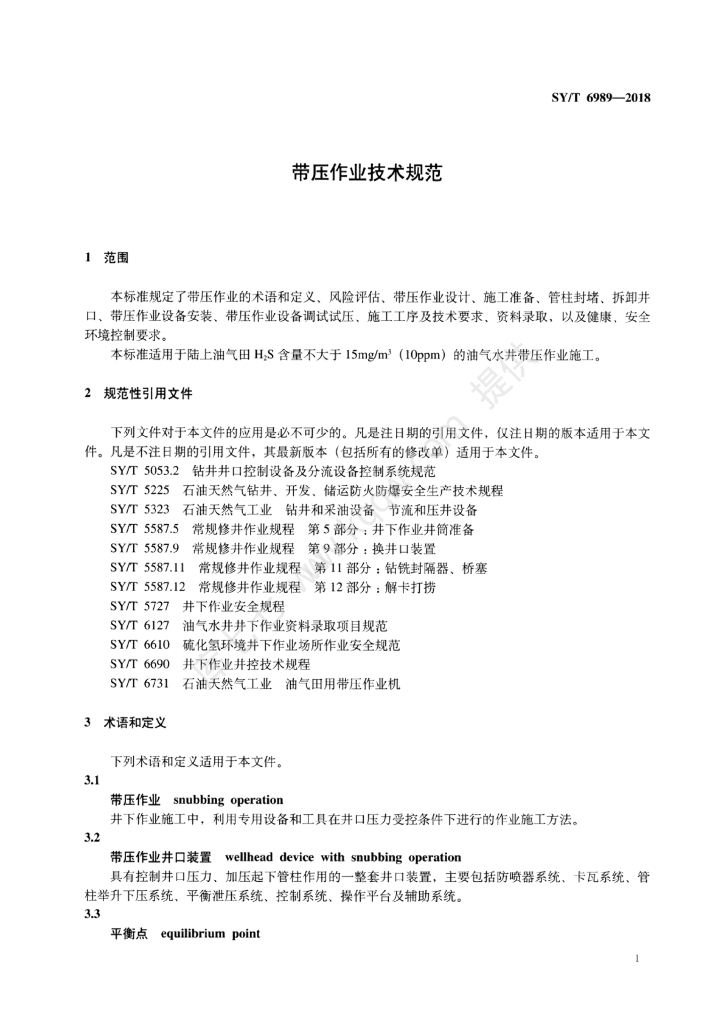 SY/T 6989-2018 带压作业技术规范