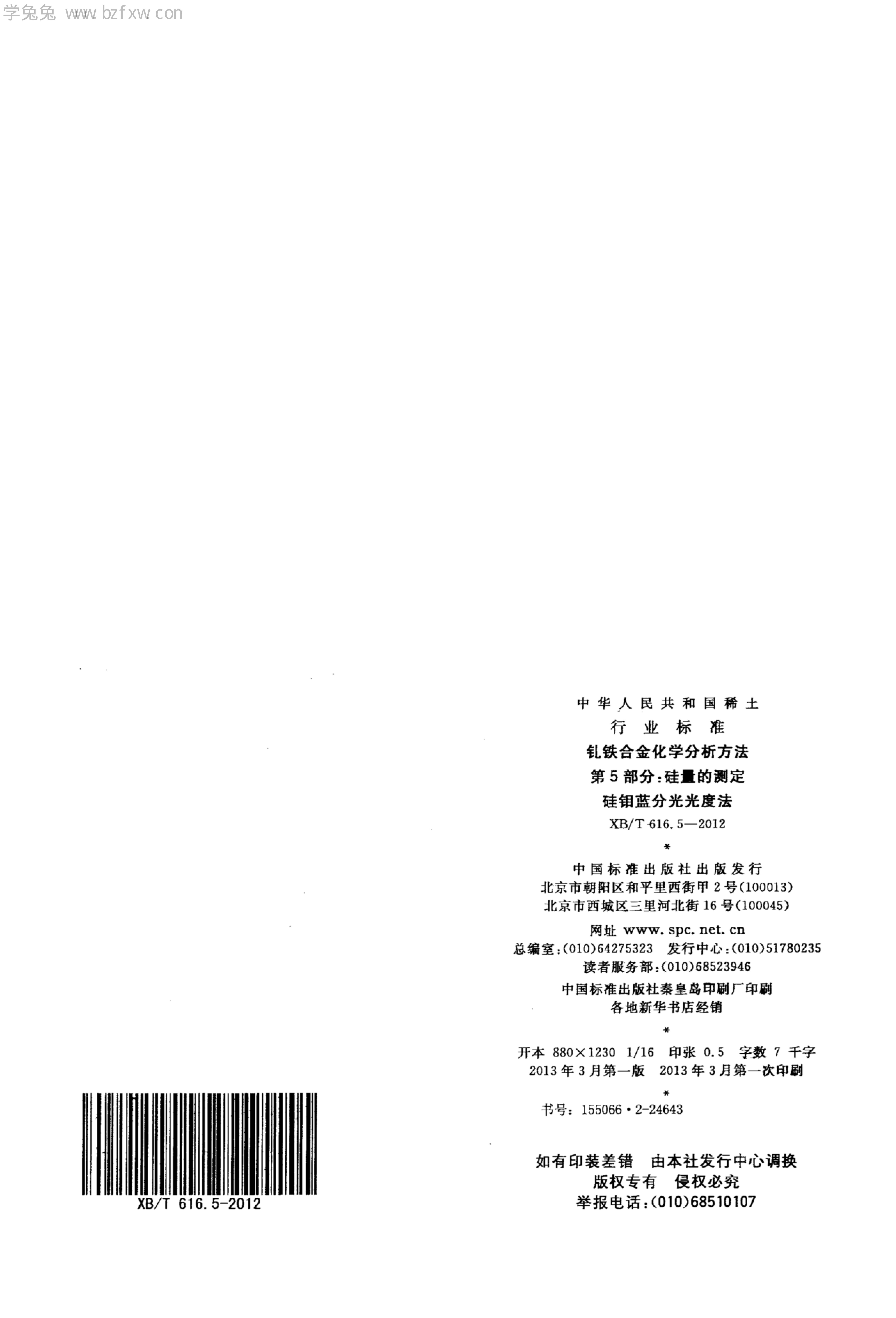 XB/T 616.5-2012 钆铁合金化学分析方法 第5部分:硅量的测定 硅钼蓝分光光度法