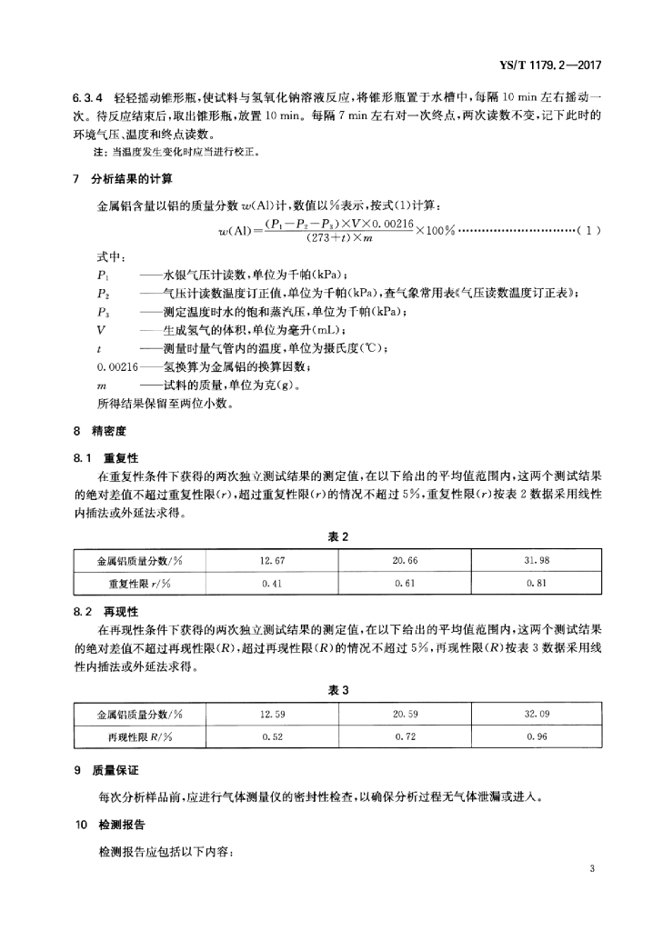 YS/T 1179.2-2017 铝渣化学分析方法 第2部分:金属铝含量的测定气体容量法