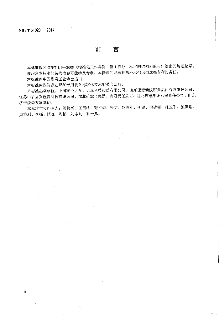 NB/T 51020-2014 煤矿用固体充填液压支架技术条件