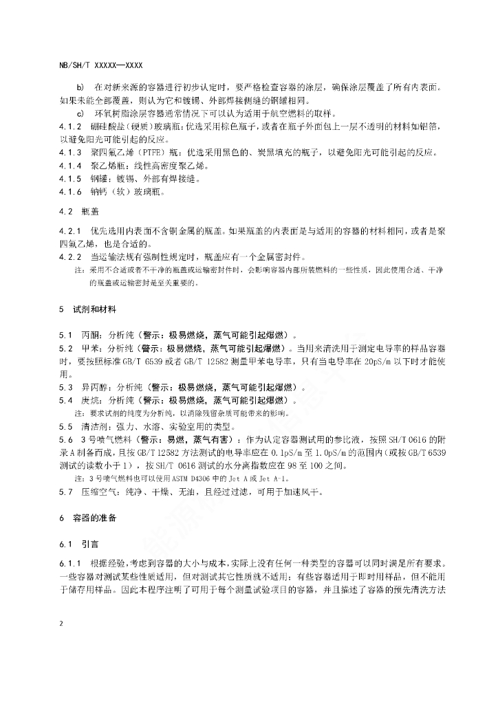 NB/SH/T 6026-2021 航空燃料受痕量污染影响的试验中样品容器的选用规范