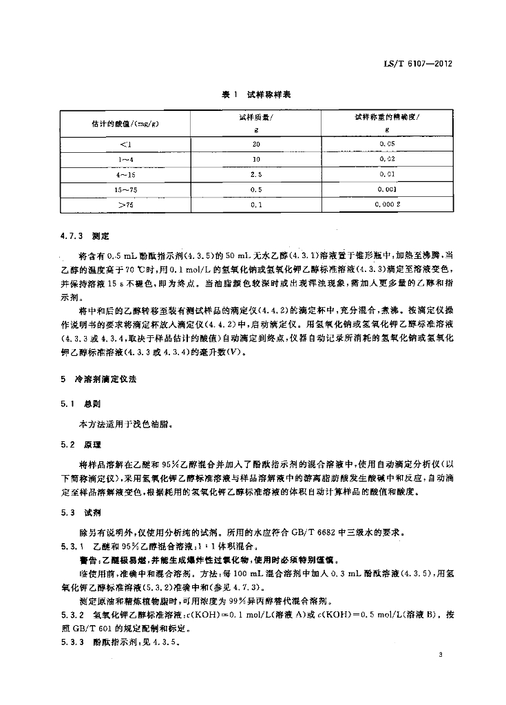 LS/T 6107-2012 动植物油脂 酸值和酸度测定 自动滴定分析仪法