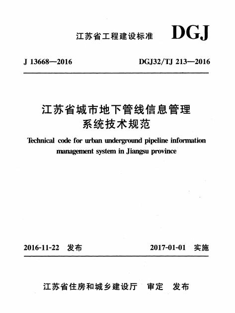DGJ32/TJ 213-2016 江苏省城市地下管线信息管理系统技术规范