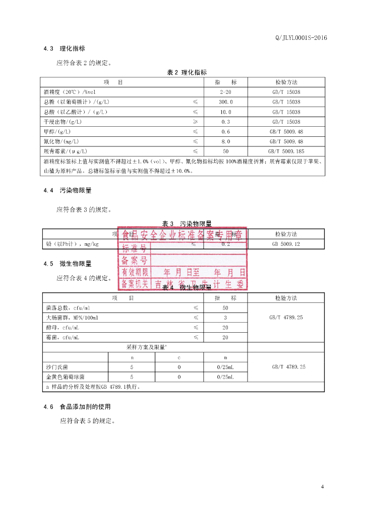Q/JLYL 0001S-2016 吉林省裕隆酒业有限公司 鸡尾预调酒
