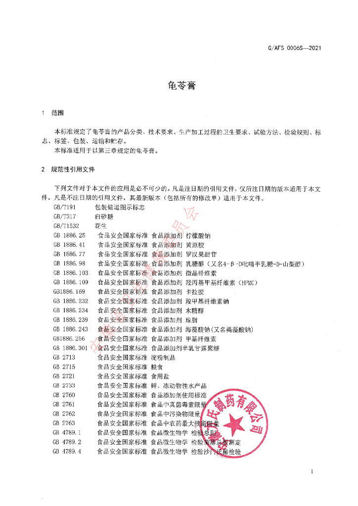Q/AFS 0006S-2021 龟苓膏