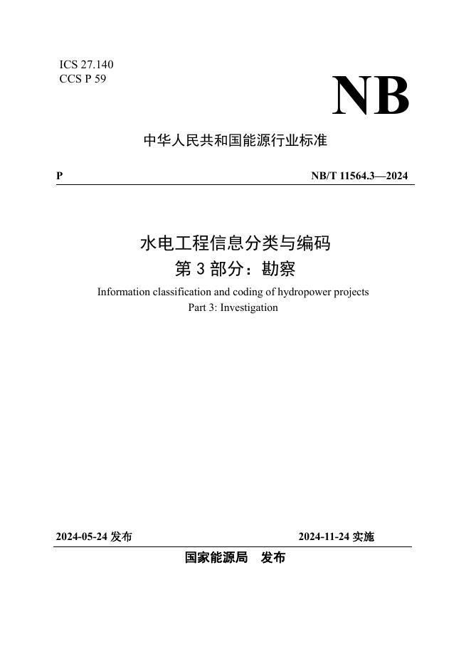 NB/T 11564.3-2024 水电工程信息分类与编码 第3部分:勘察
