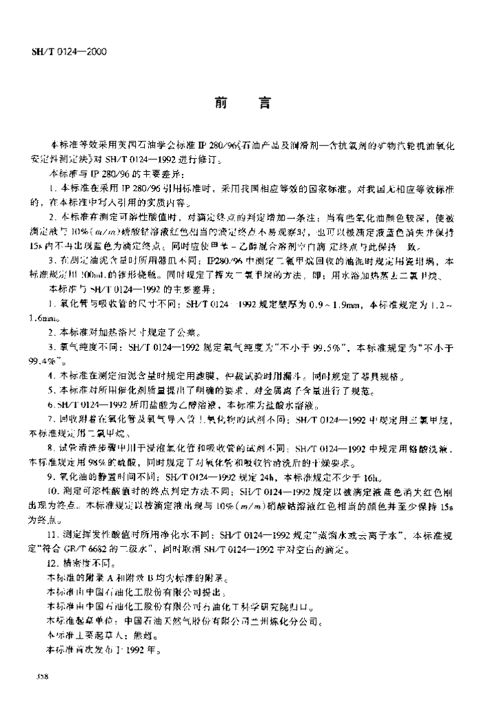 SH/T 0124-2000 含抗氧剂的汽轮机油氧化安定性测定法