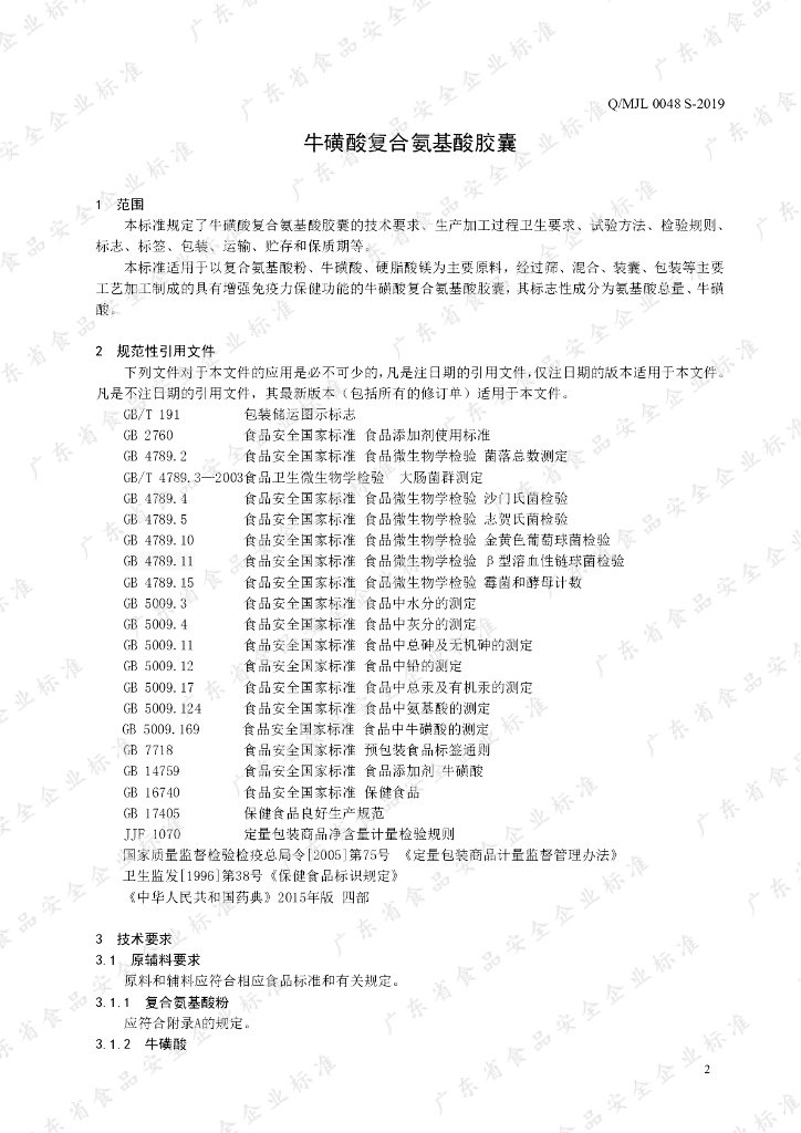 Q/MJL 0048S-2019 牛磺酸复合氨基酸胶囊
