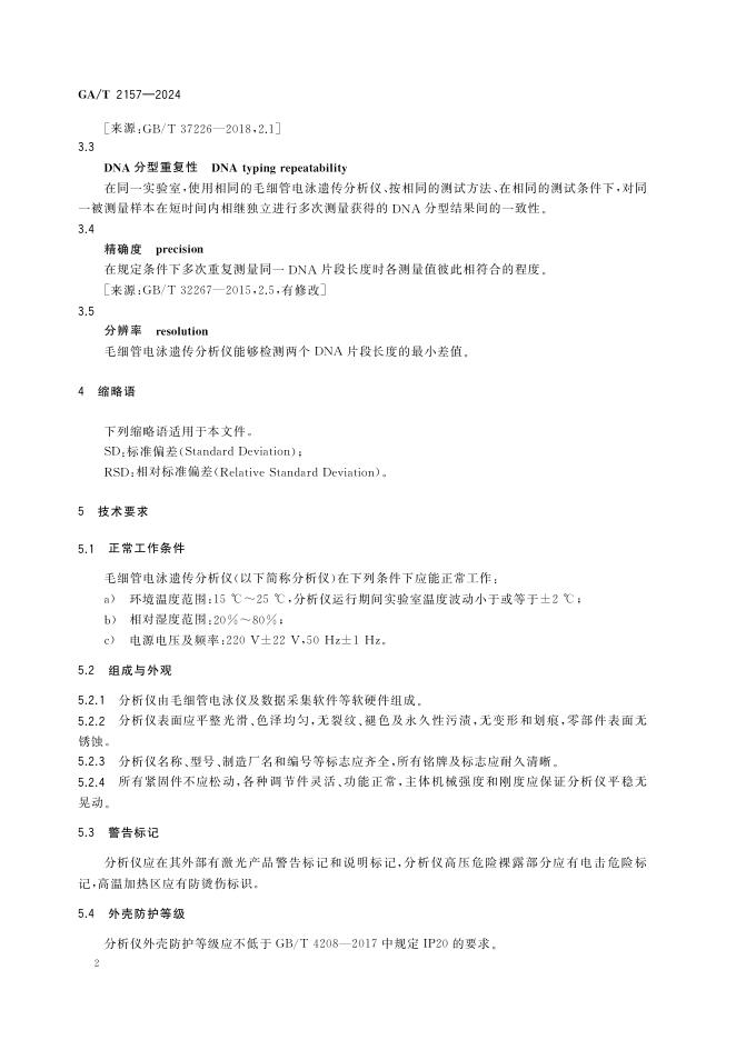 GA/T 2157-2024 毛细管电泳遗传分析仪