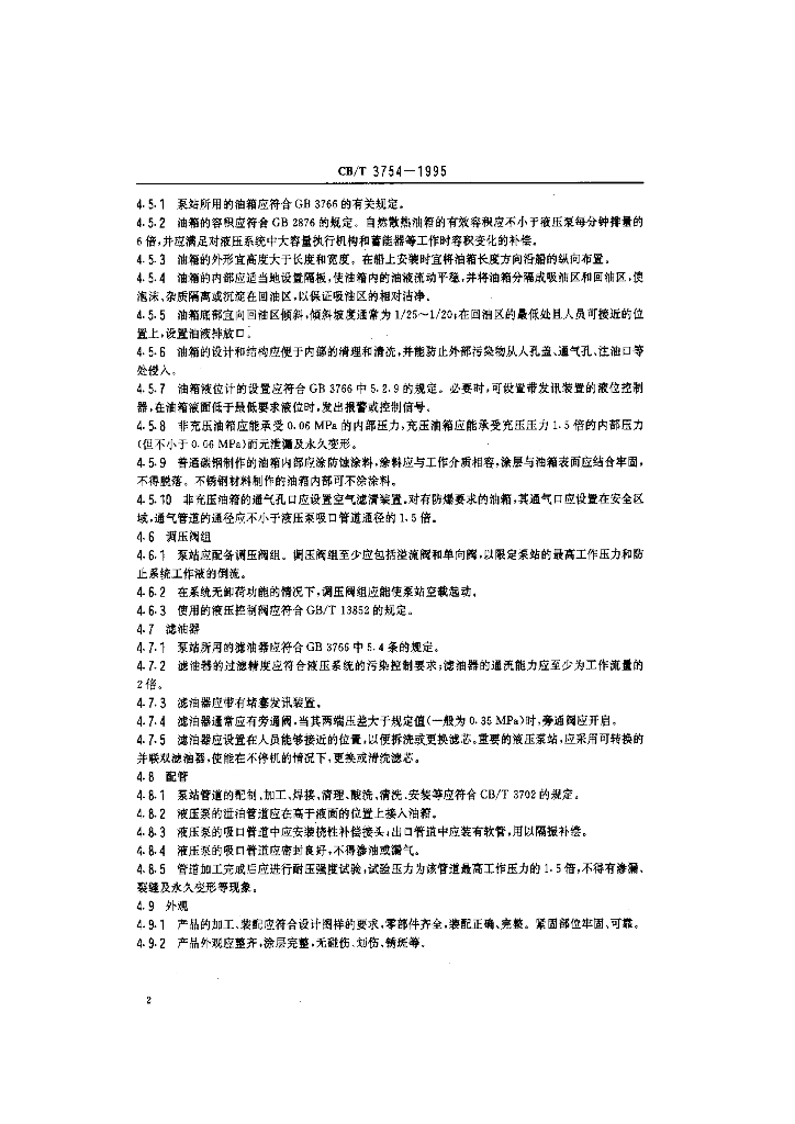 CB/T 3754-1995 船用液压泵站技术条件