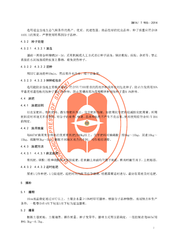 DB14/T 905-2014 绿色食品谷子生产技术规程