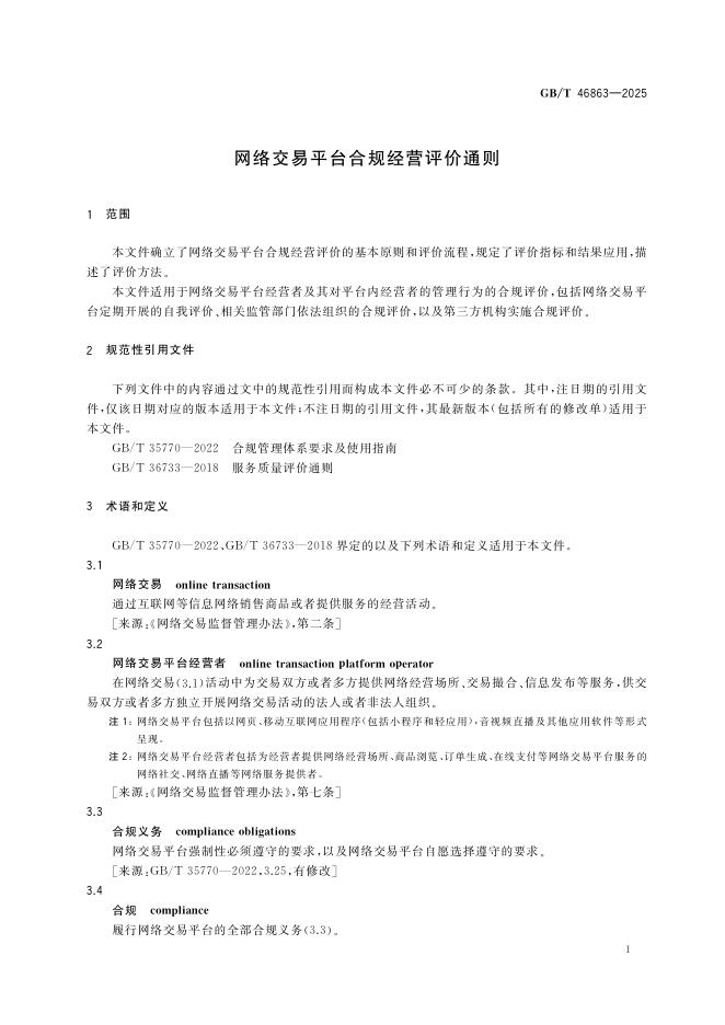 GB/T 46863-2025 网络交易平台合规经营评价通则