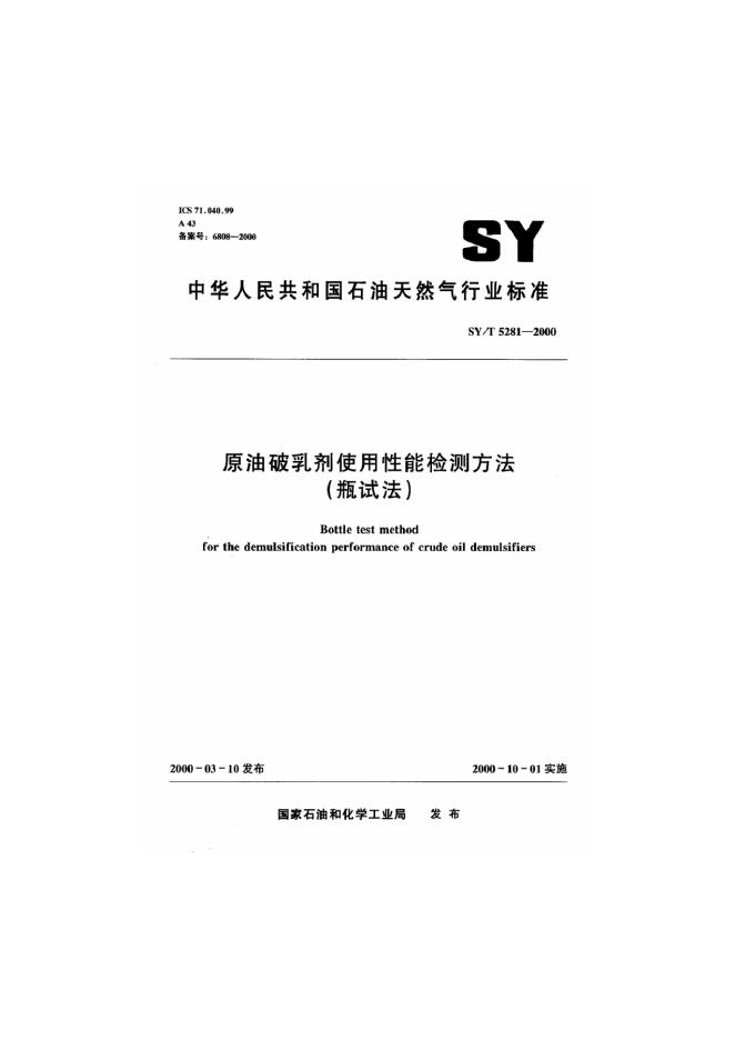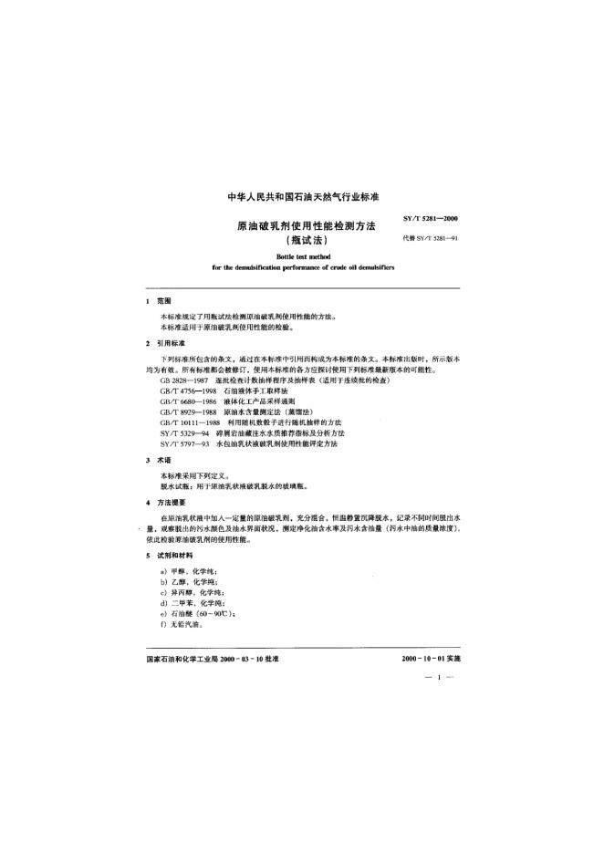 SY 5281-1991 破乳剂使用性能检验方法 瓶试法