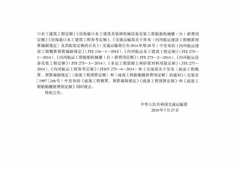 交通运输水运工程造价定额中心、长江航道工程局有限责任公司(筹)、黑龙江省航务管理局、湖南省又通还输厅交通建设造价管理站、江苏省交通厅工程质量监督局、中设设计集团股份有限公司