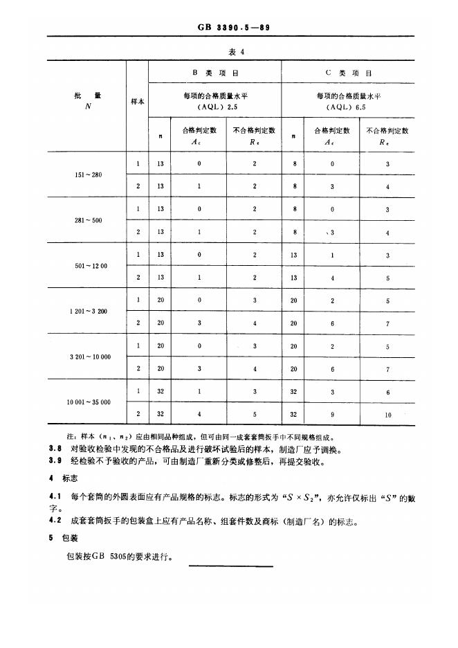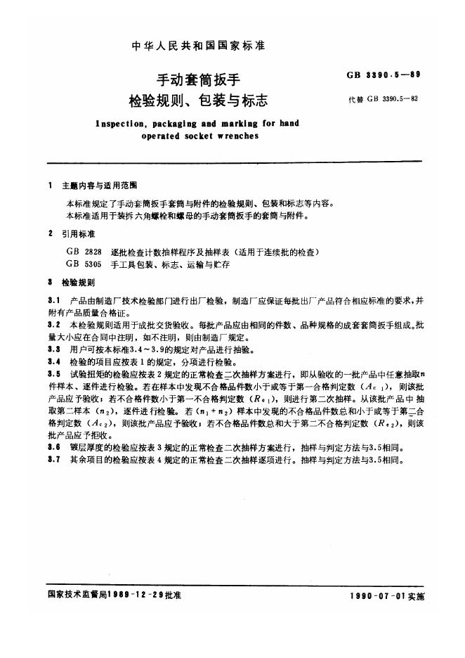 GB/T 3390.5-1989 手动套筒扳手检验规则、包装与标志