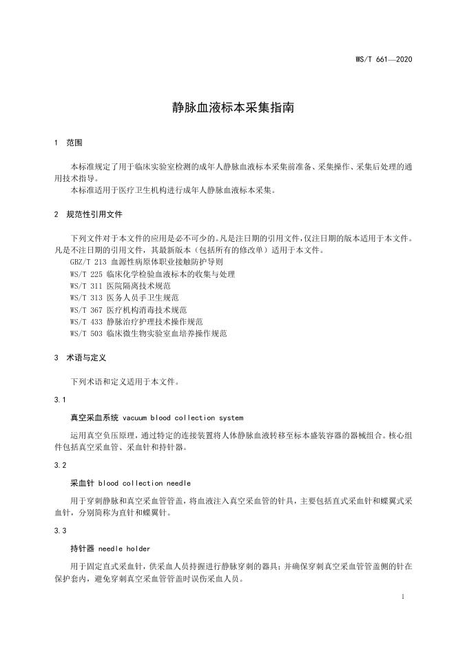 WS/T 661-2020 静脉血液标本采集指南