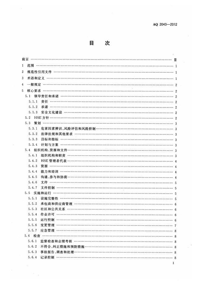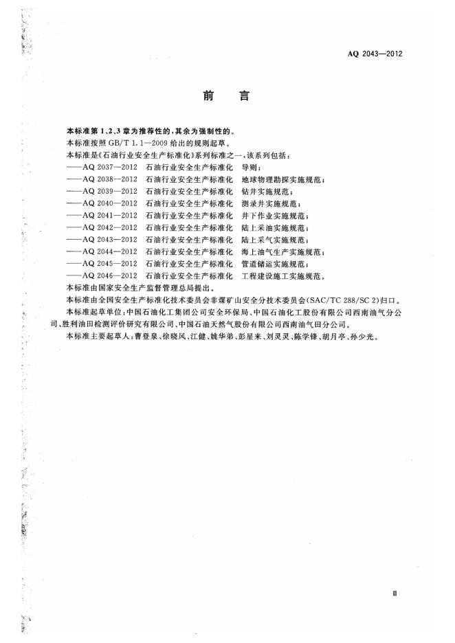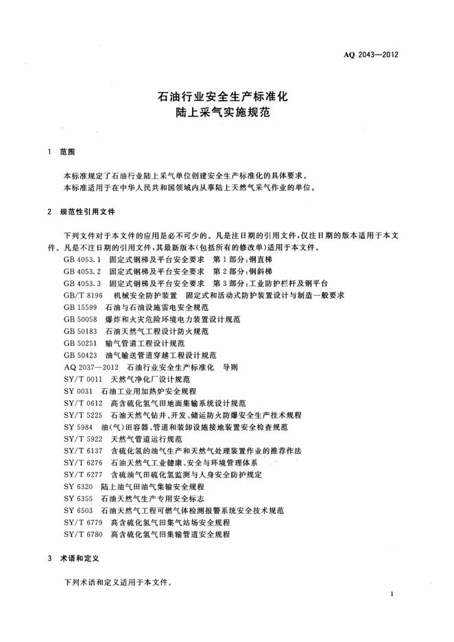 AQ/T 2043-2012 石油行业安全生产标准化 陆上采气实施规范