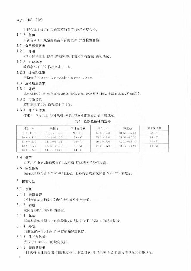 SC/T 1148-2020 哲罗鱼 亲本和苗种
