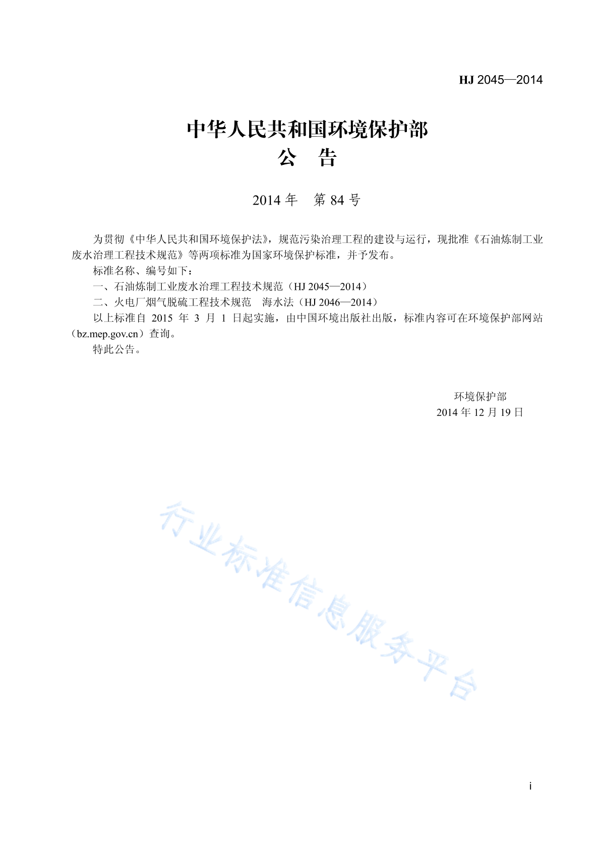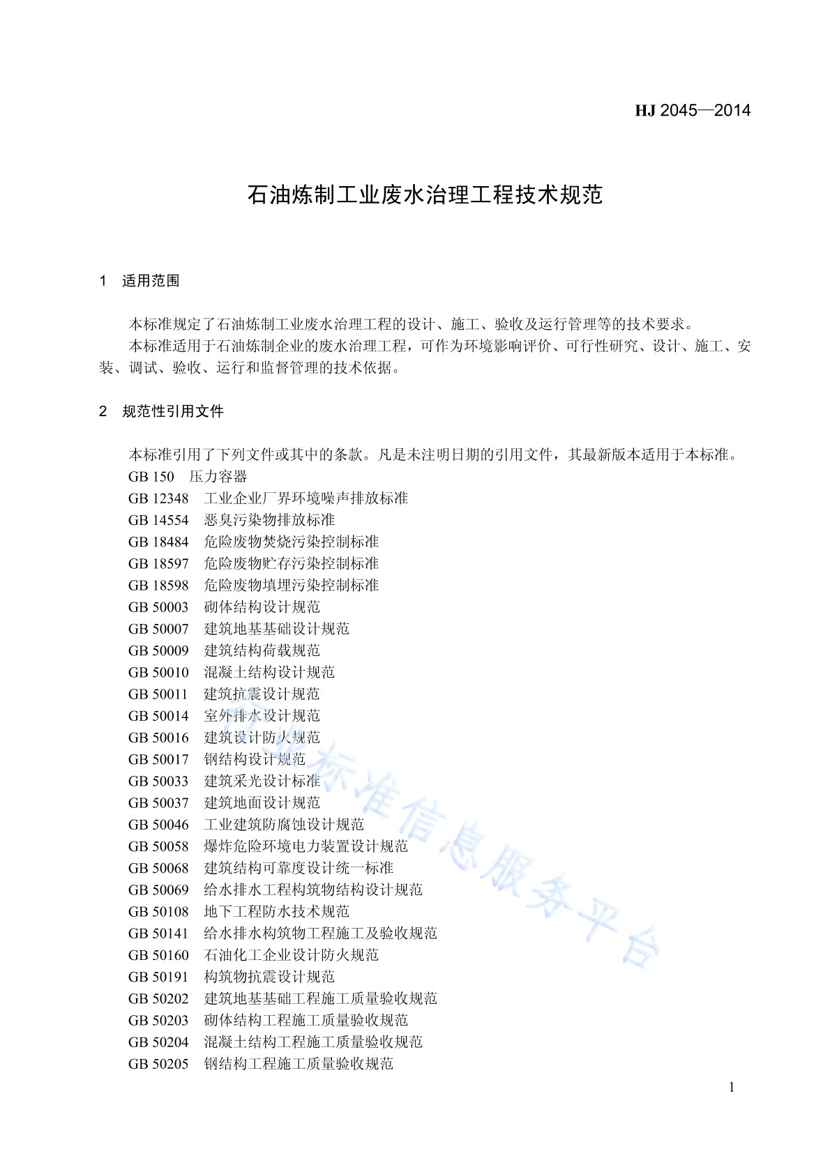 HJ 2045-2014 石油炼制工业废水治理工程技术规范