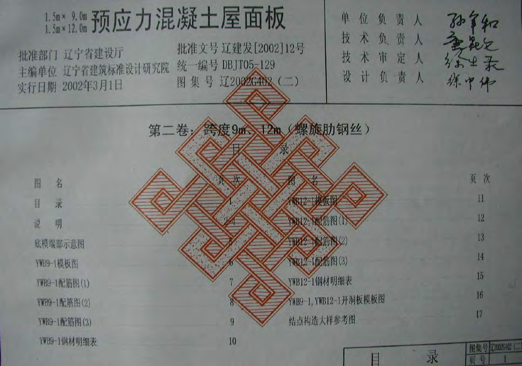 辽2002G402 9m~15m跨度预应力混凝土屋面板图集