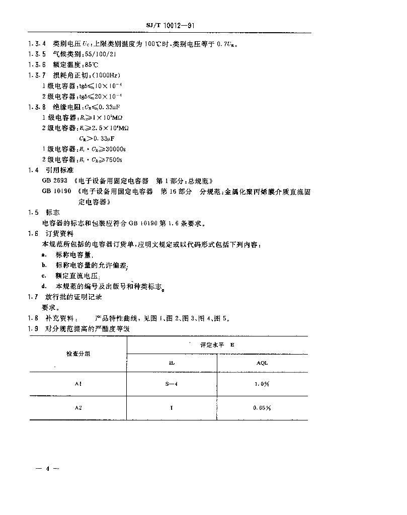 SJ/T 10012-1991 电子元器件详细规范 CBB 23型双面金属化聚丙烯膜介质直流固定电容器 评定水平E(可供认证用)