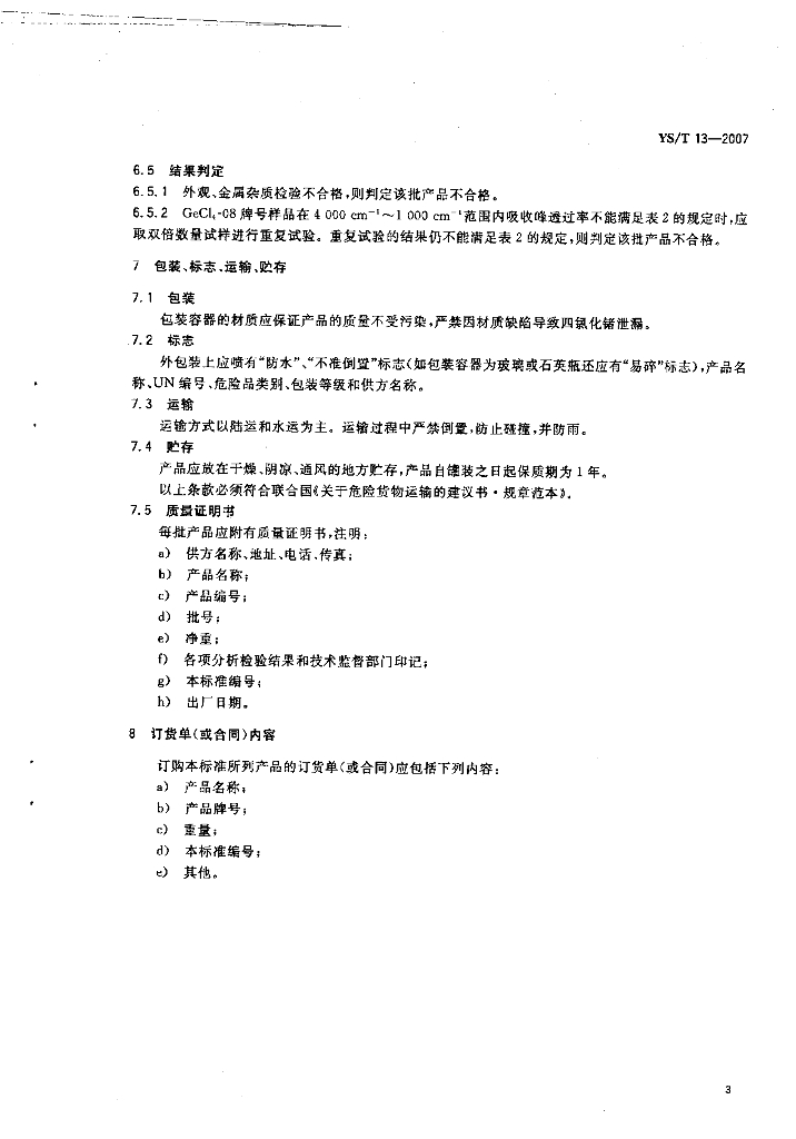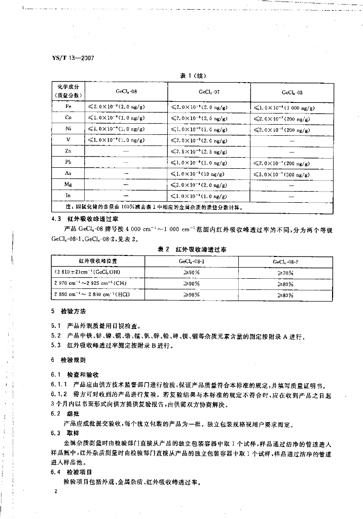 YS/T 13-2007 高纯四氯化锗