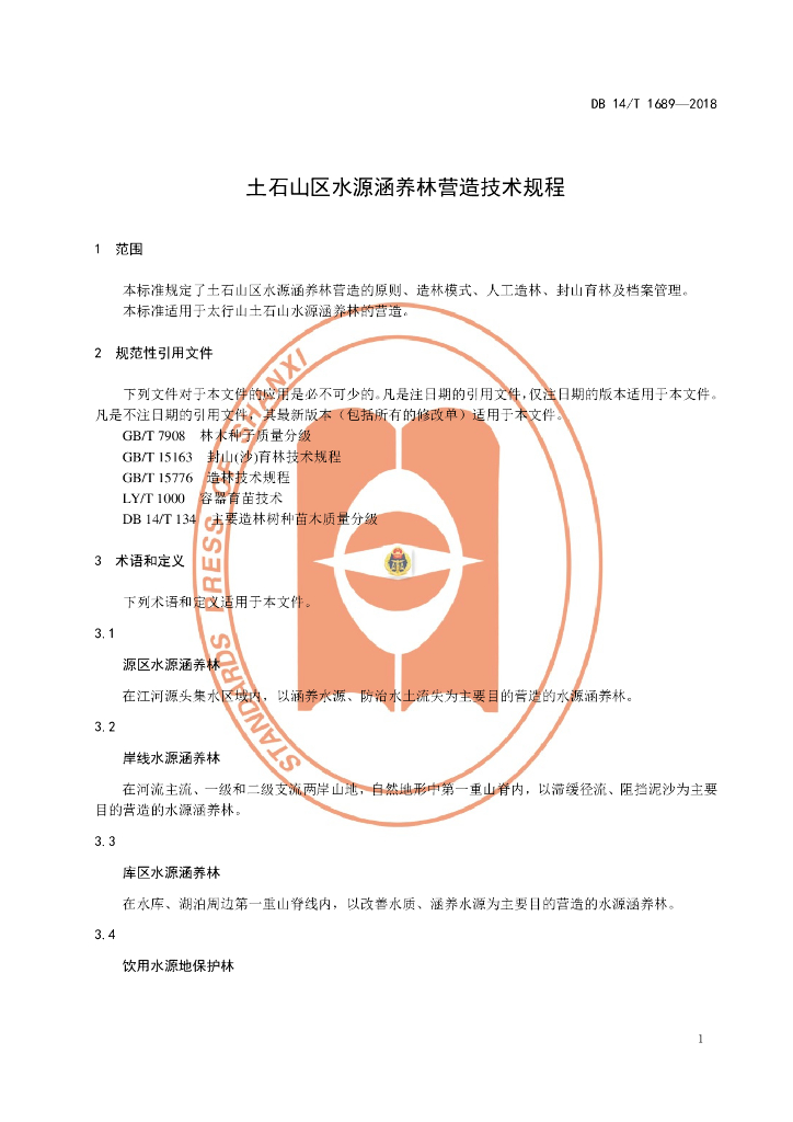 DB14/T 1689-2018 土石山区水源涵养林营造技术规程