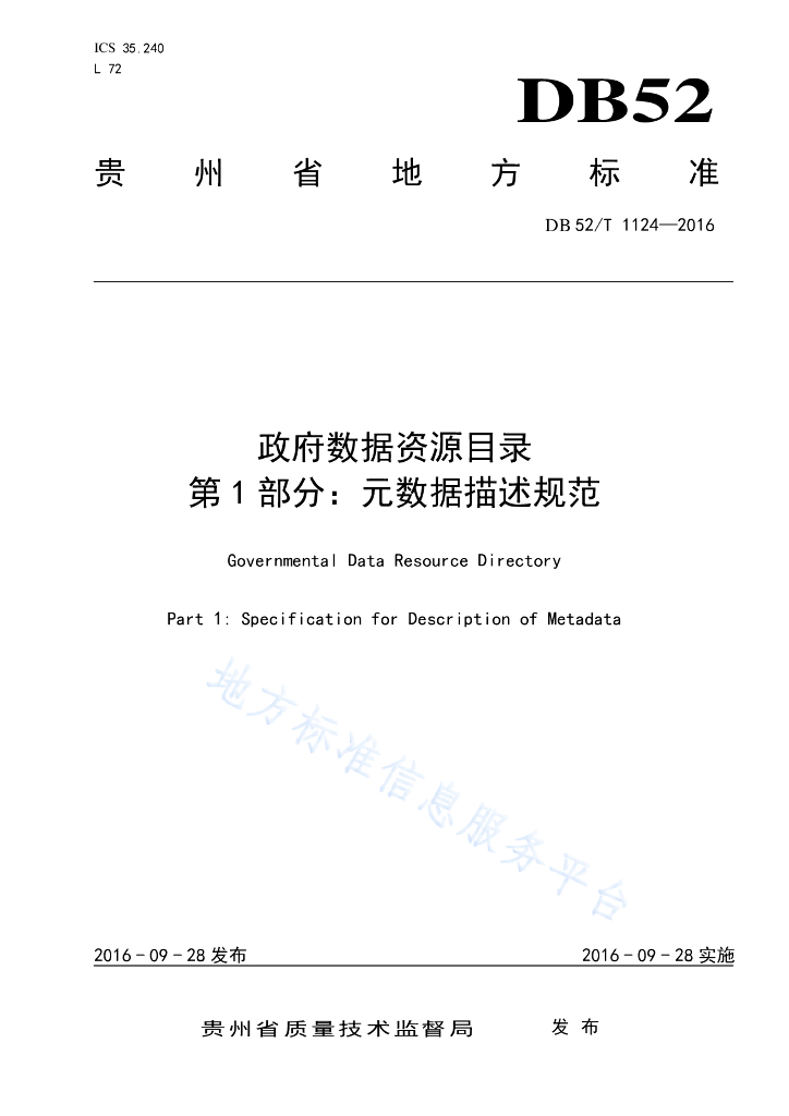 DB52/T 1124-2016 政府数据资源目录 第1部分:元数据描述规范