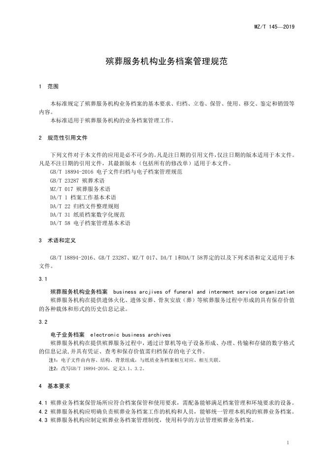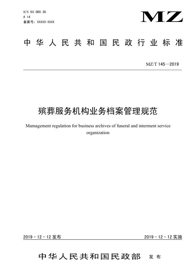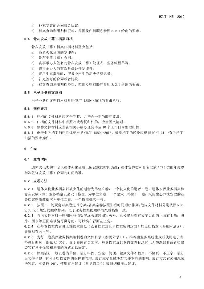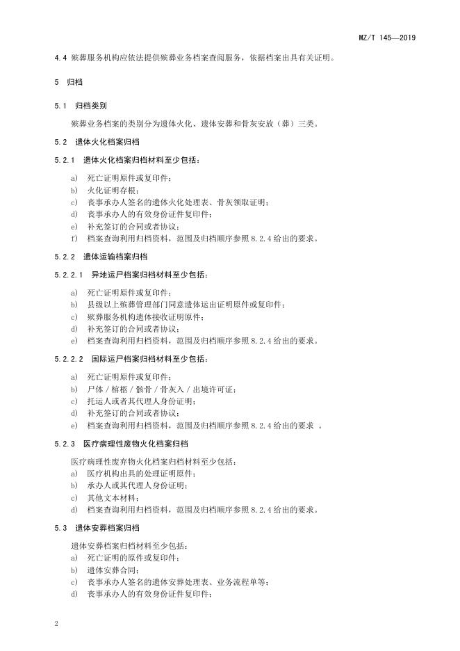 MZ/T 145-2019 殡葬服务机构业务档案管理规范