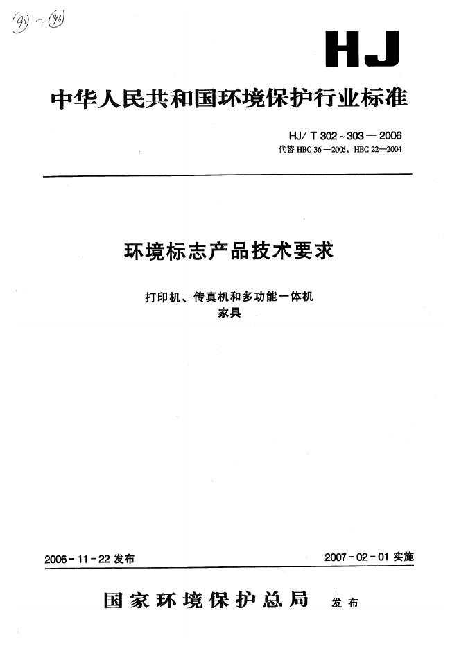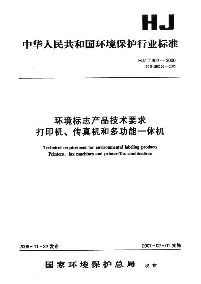 HJ/T 302-2006 环境标志产品技术要求 打印机、传真机和多功能一体机