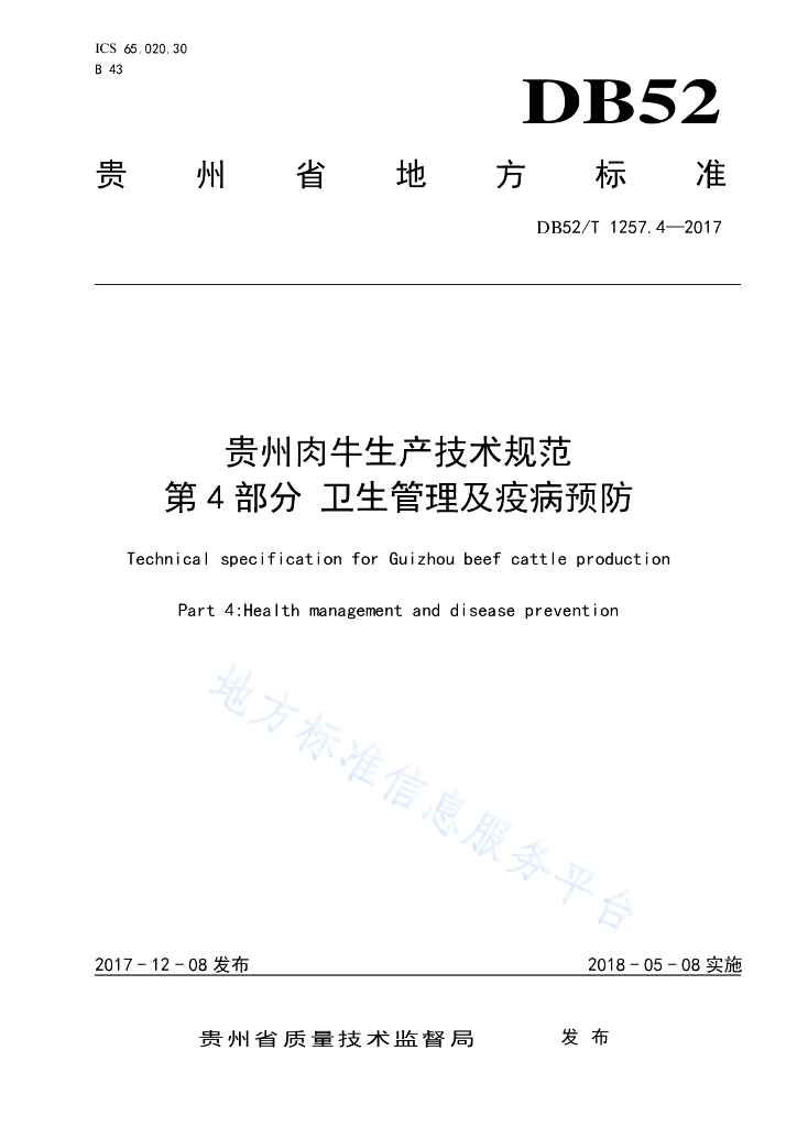 DB52/T 1257.4-2017 贵州肉牛生产技术规范 第4部分 卫生管理及疫病预防