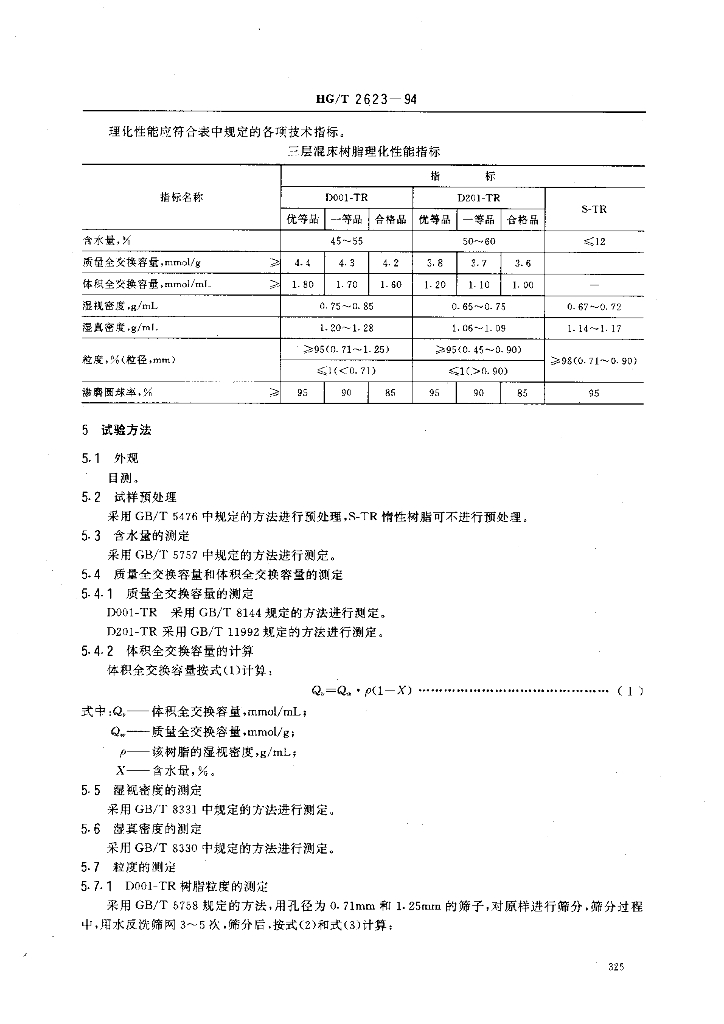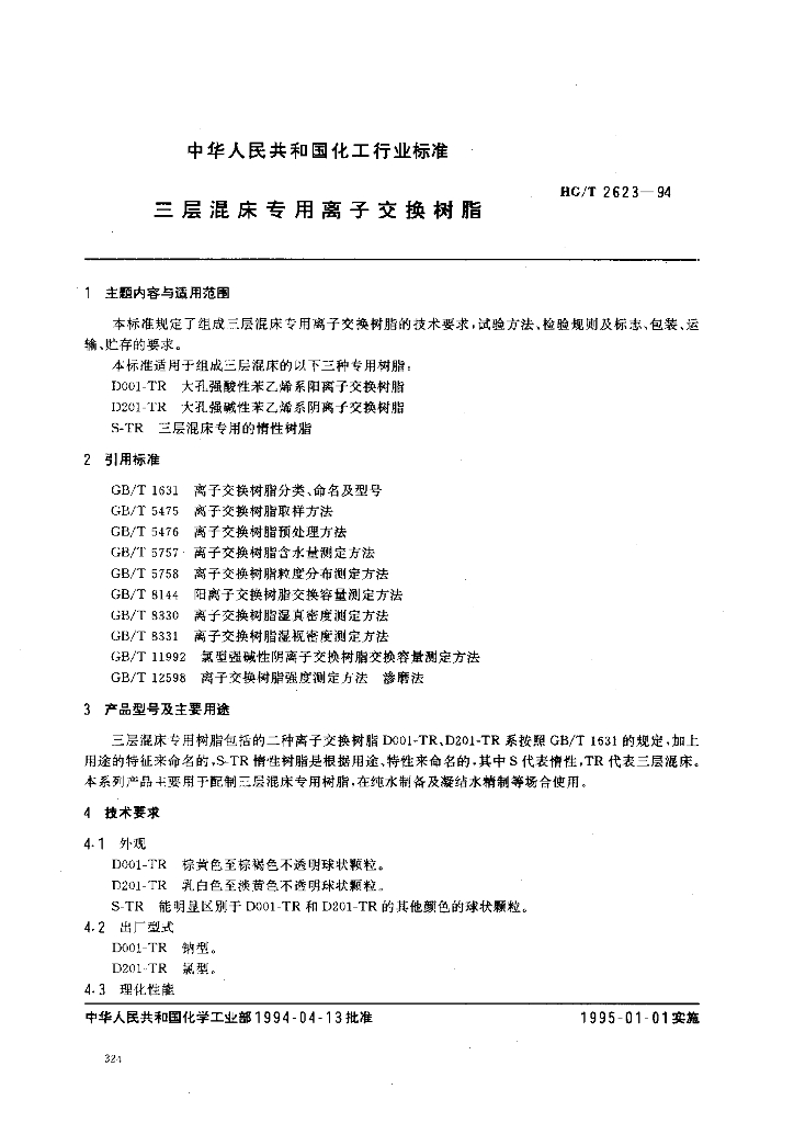 HG/T 2623-1994 三层混床专用离子交换树脂