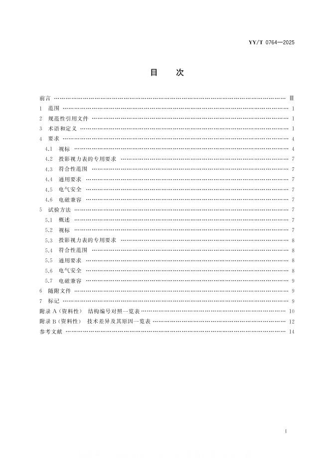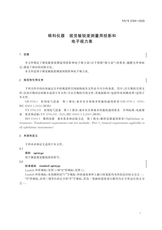 YY/T 0764-2025 眼科仪器 视觉敏锐度测量用投影和电子视力表