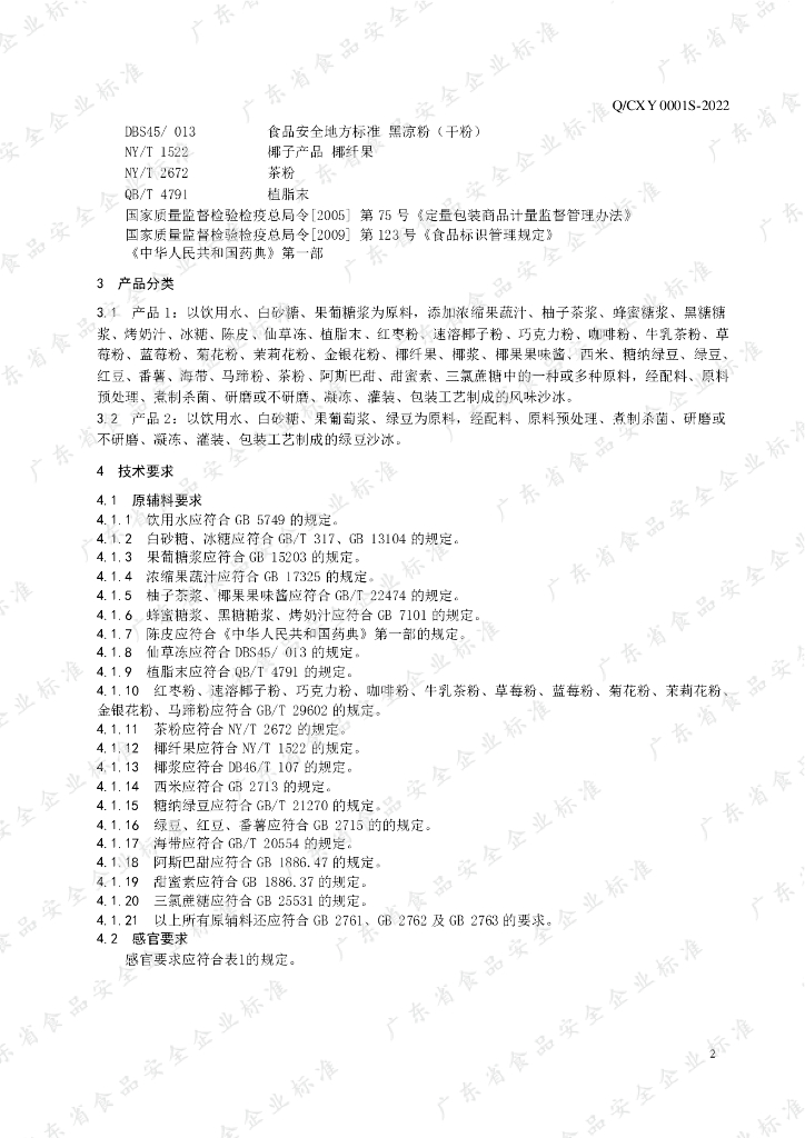 - 1Q/BQSY 0021S-2024 凉粉类冲调方便食品