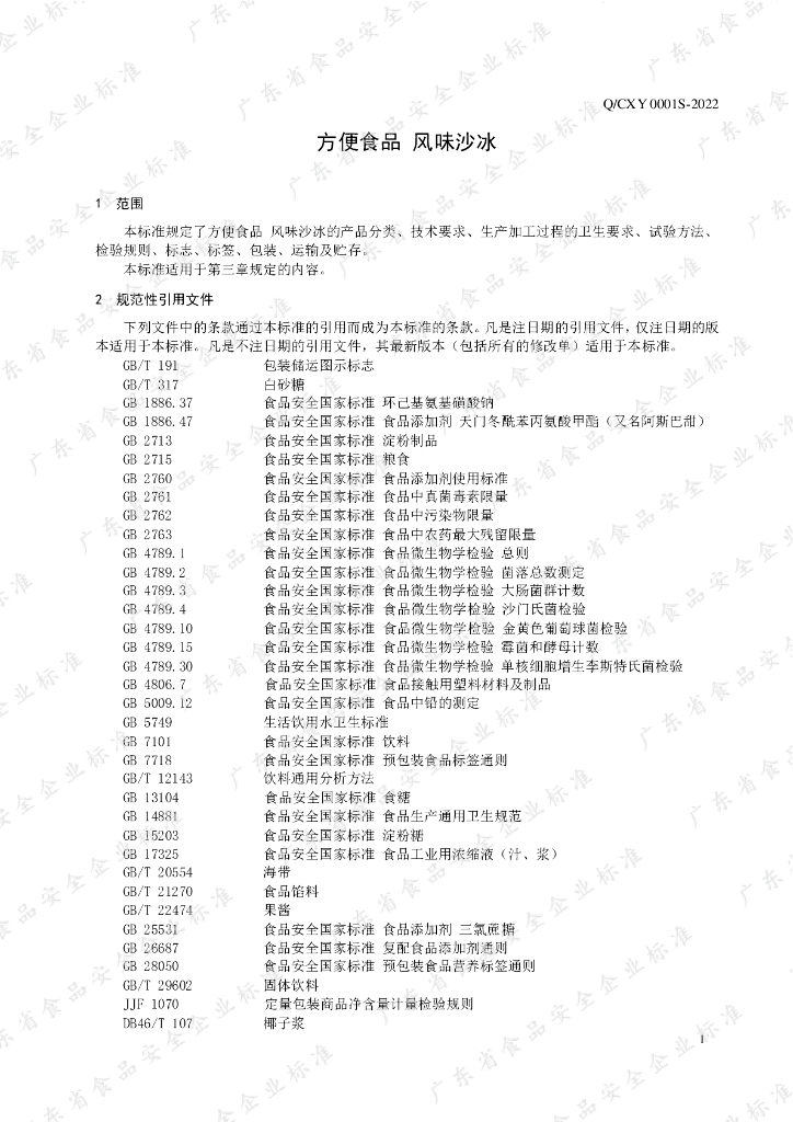 Q/CXY 0001S-2022 方便食品 风味沙冰