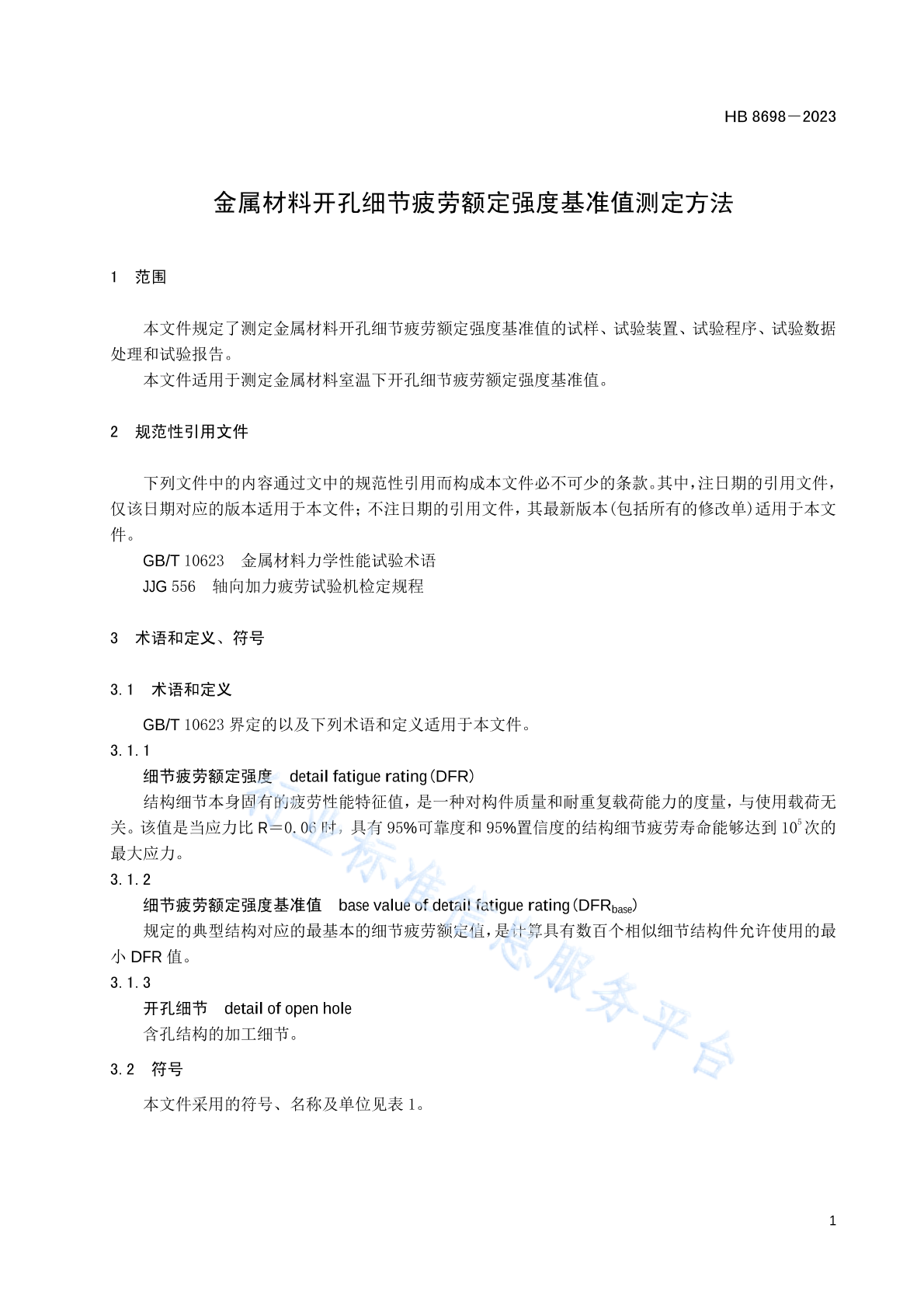 HB 8698-2023 金属材料开孔细节疲劳额定强度基准值测定方法