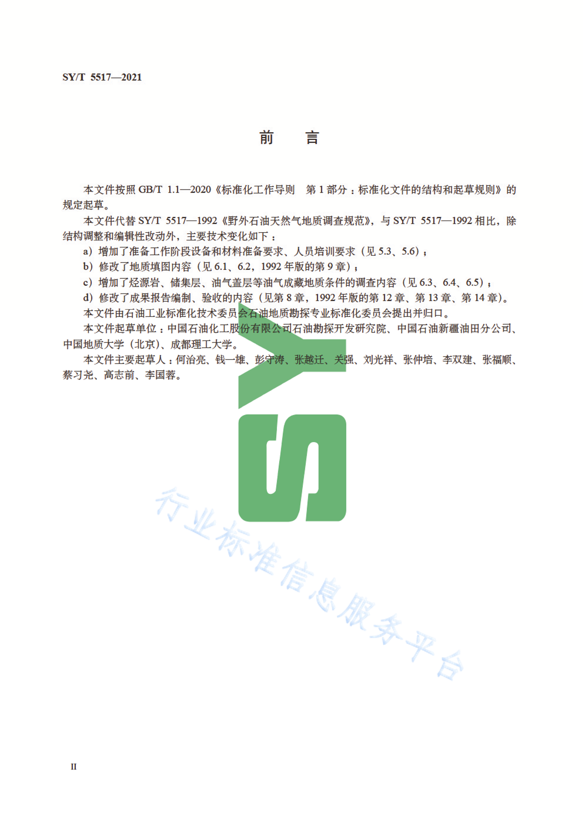 - 提出单位:石油工业标准化技术委员会石油地质勘探专业标准化委员会