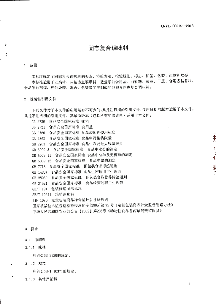 Q/YL 0001S-2018 固态复合调味料