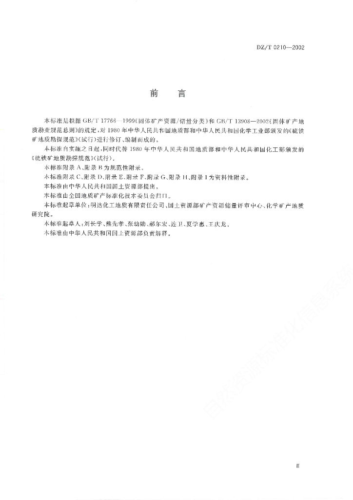 DZ/T 0210-2002 硫铁矿地质勘查规范