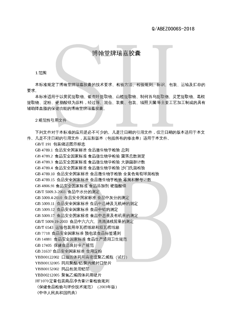 Q/ABEZ 0006S-2018 博翰堂牌瑞嘉胶囊