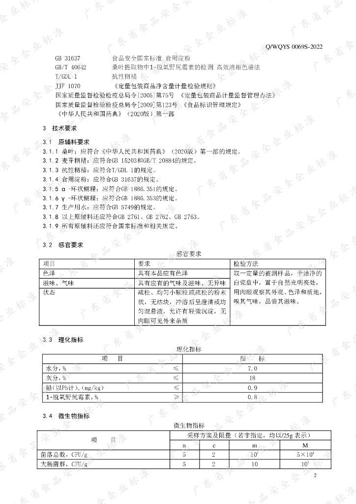 Q/WQYS 0069S-2022 桑叶提取物