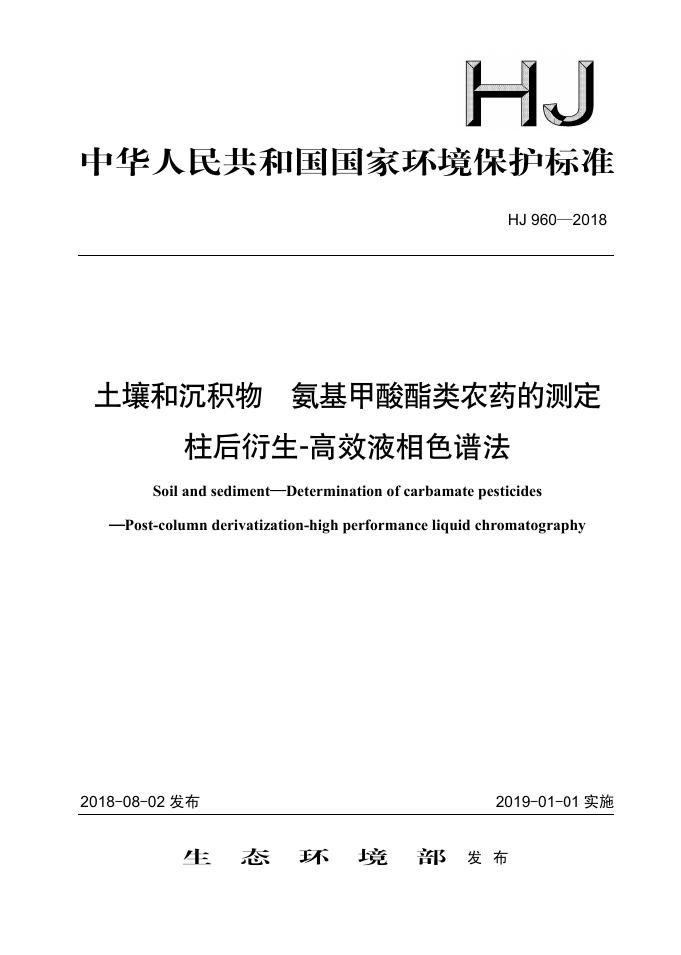 HJ 960-2018 土壤和沉积物 氨基甲酸酯类农药的测定 柱后衍生-高效液相色谱法