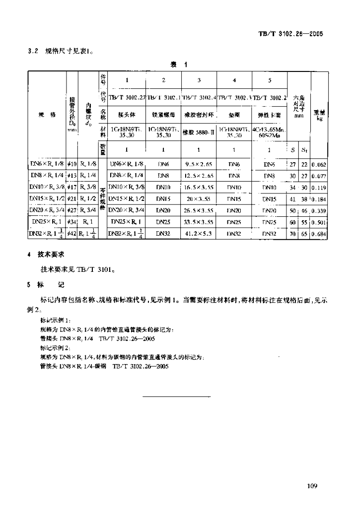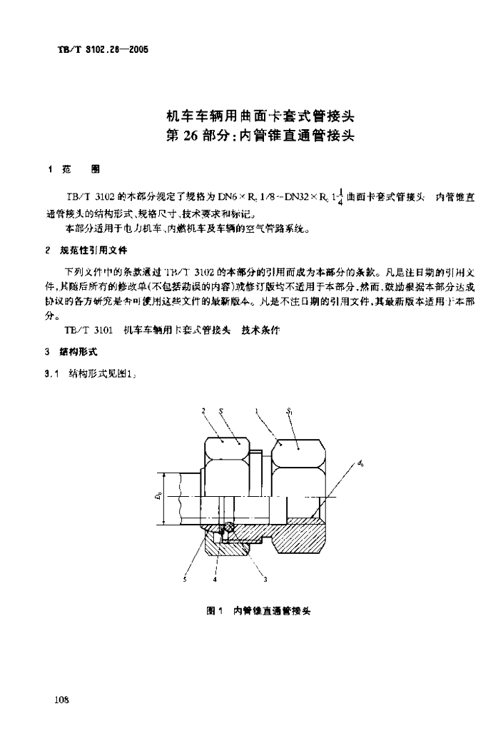 TB/T 3102.26-2005 机车车辆用曲面卡套式管接头 第26部分:内管锥直角管接头