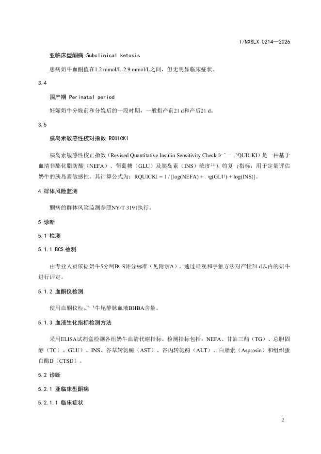T/NXSLX 0214-2026 宁夏地区奶牛酮病诊断与防治技术规范