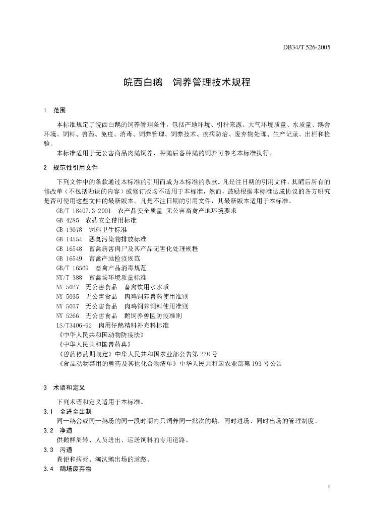 DB34/T 526-2005 皖西白鹅 商品肉鹅饲养管理技术规程