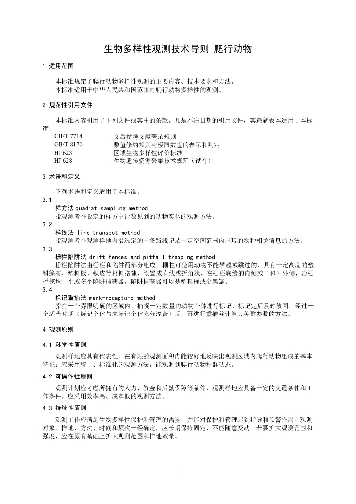 HJ 710.5-2014 生物多样性观测技术导则 爬行动物