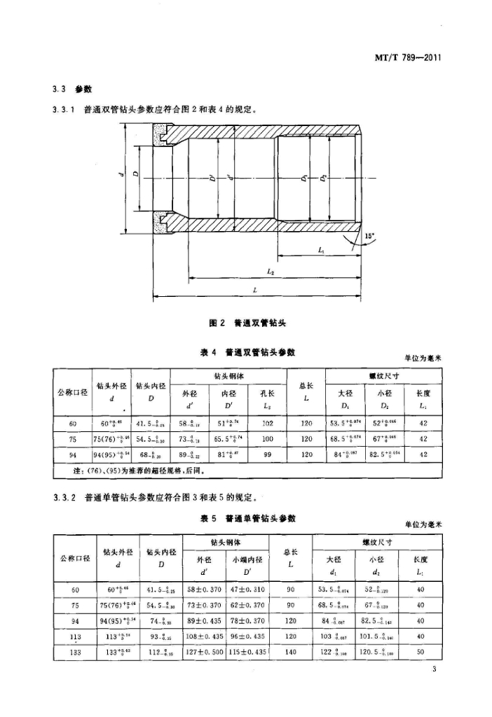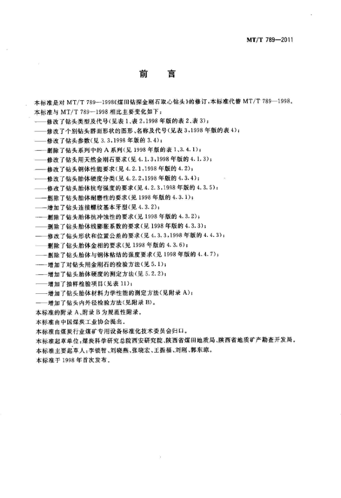 MT/T 789-2011 煤田钻探金刚石取心钻头