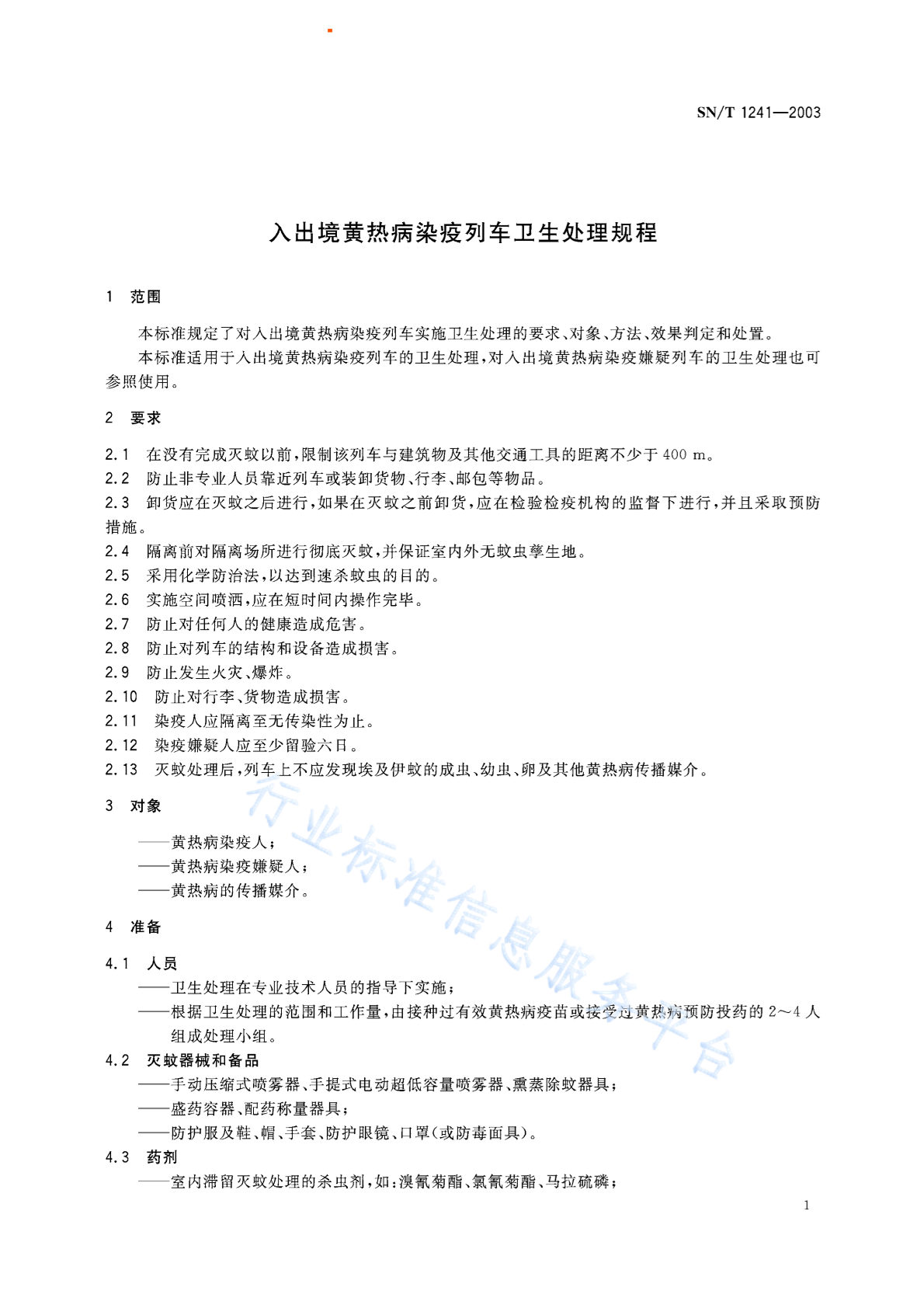 SN/T 1241-2003 入出境黄热病染疫列车卫生处理规程